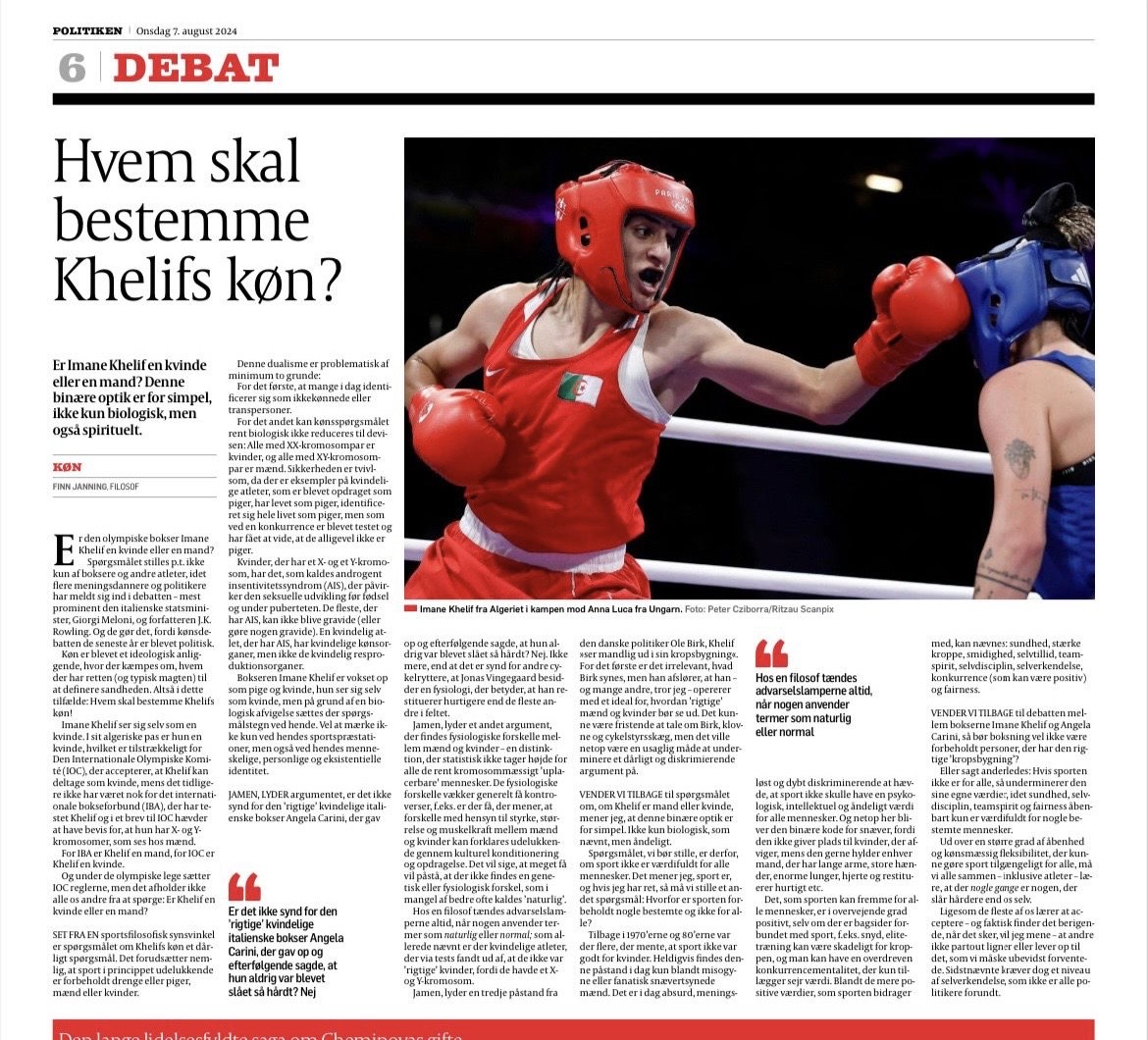 Køn er blevet et ideologisk anliggende, hvor der kæmpes om, hvem der har retten (og typisk magten) til at definere sandheden. Altså, i dette tilfælde: Hvem skal bestemme Khelifs køn!